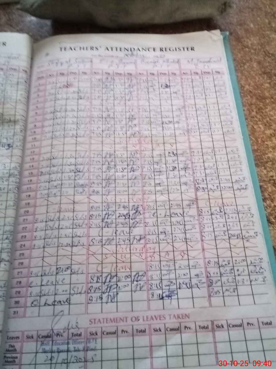 | Remarks (Use Separate Page if Required): Shafqar sultan PST available in school no application no leave approval proof was available in said school | |||||