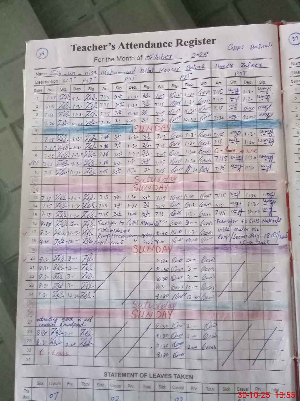 | Name: ZA**** UNNI**** Designation: (School Headmaster's/Headmistress's) PST Phone/Cell Number: 03**** |