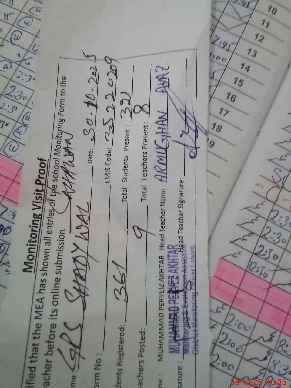 | Certified that this School was Inspected by the Undersigned MEA/DMO Today and the Information Stated Above is as Per Record. | |||||