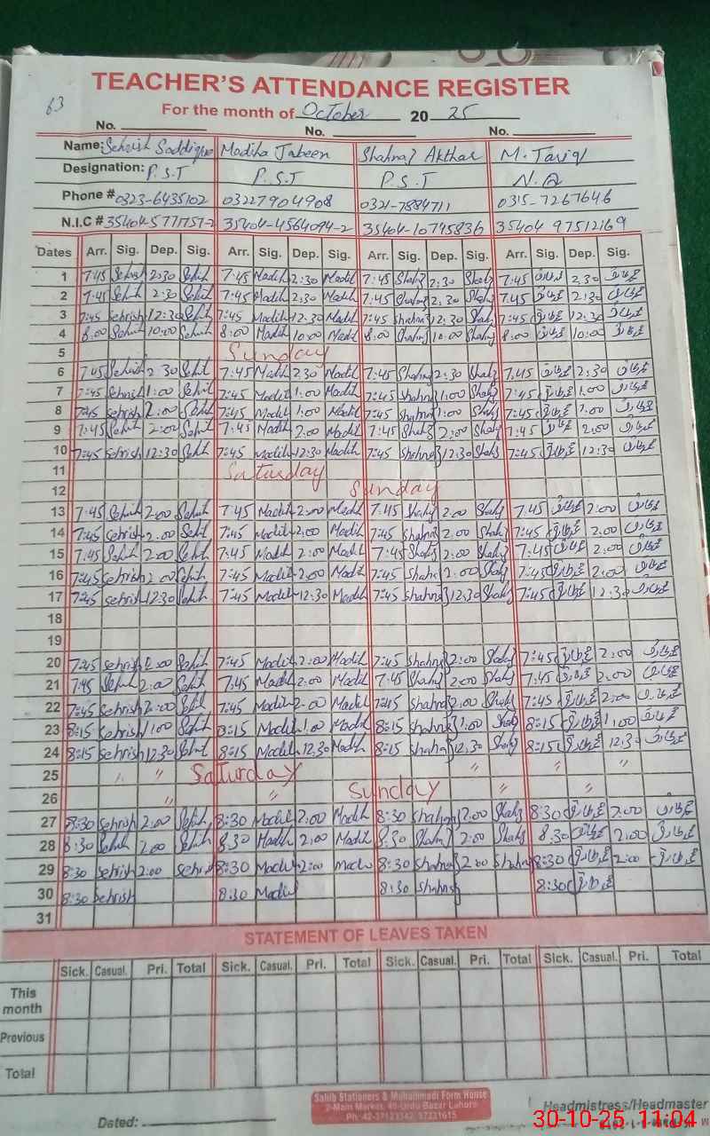 | Name: Se**** Sa**** Designation: (School Headmaster's/Headmistress's) PST Phone/Cell Number: 03**** |