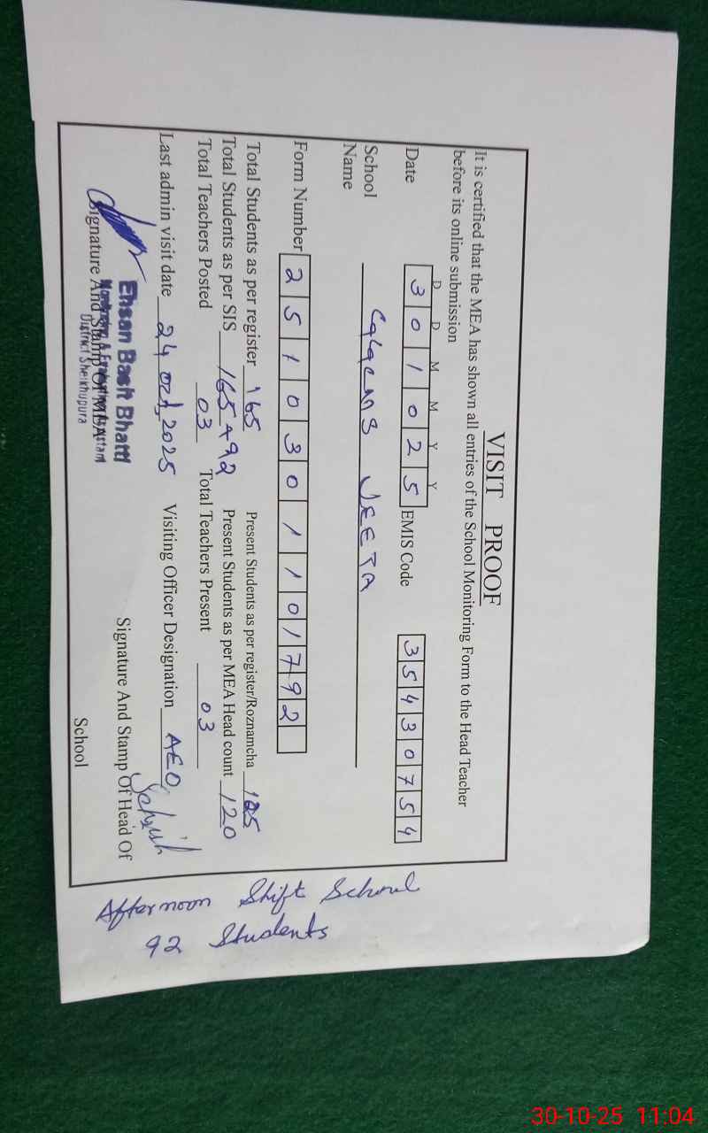 | EMIS Code: 35430754 | Name of School: GGCMS JEETA | |||