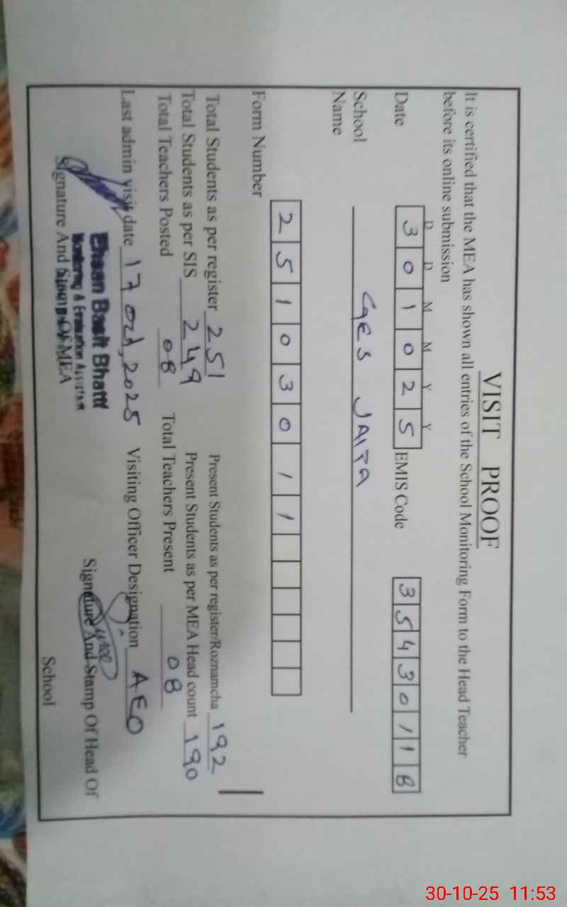 | Certified that this School was Inspected by the Undersigned MEA/DMO Today and the Information Stated Above is as Per Record. | |||||