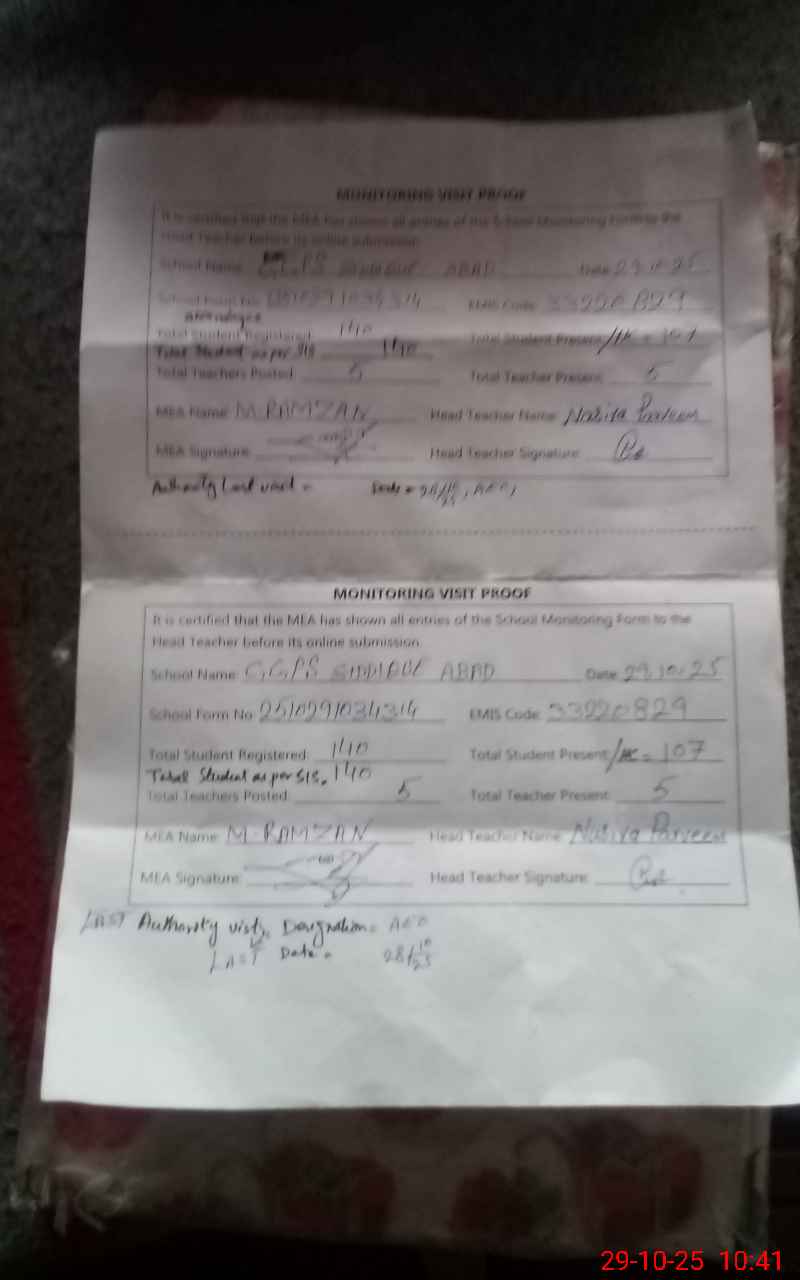 | EMIS Code: 33220829 | Name of School: GGPS SIDDIQUE ABAD | |||