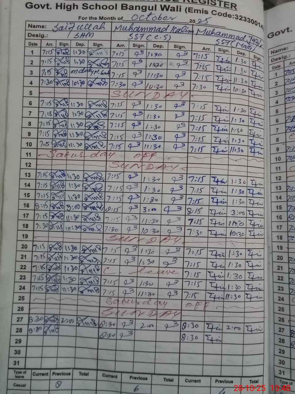 | Name: SA**** UL**** Designation: (School Headmaster's/Headmistress's) HEAD MASTER Phone/Cell Number: 03**** |