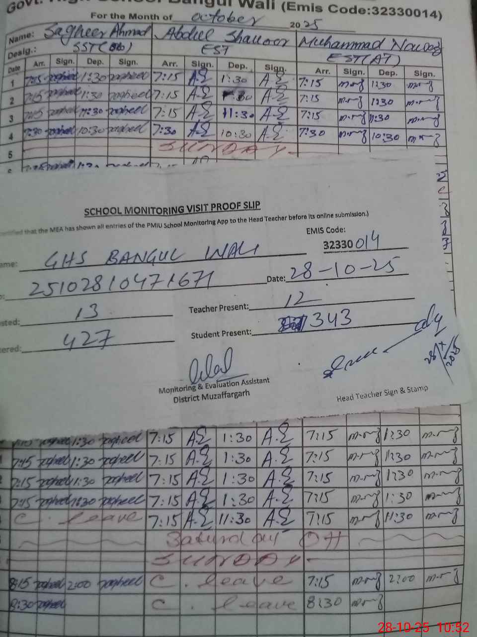 | EMIS Code: 32330014 | Name of School: GHS BANGUL WALI | |||