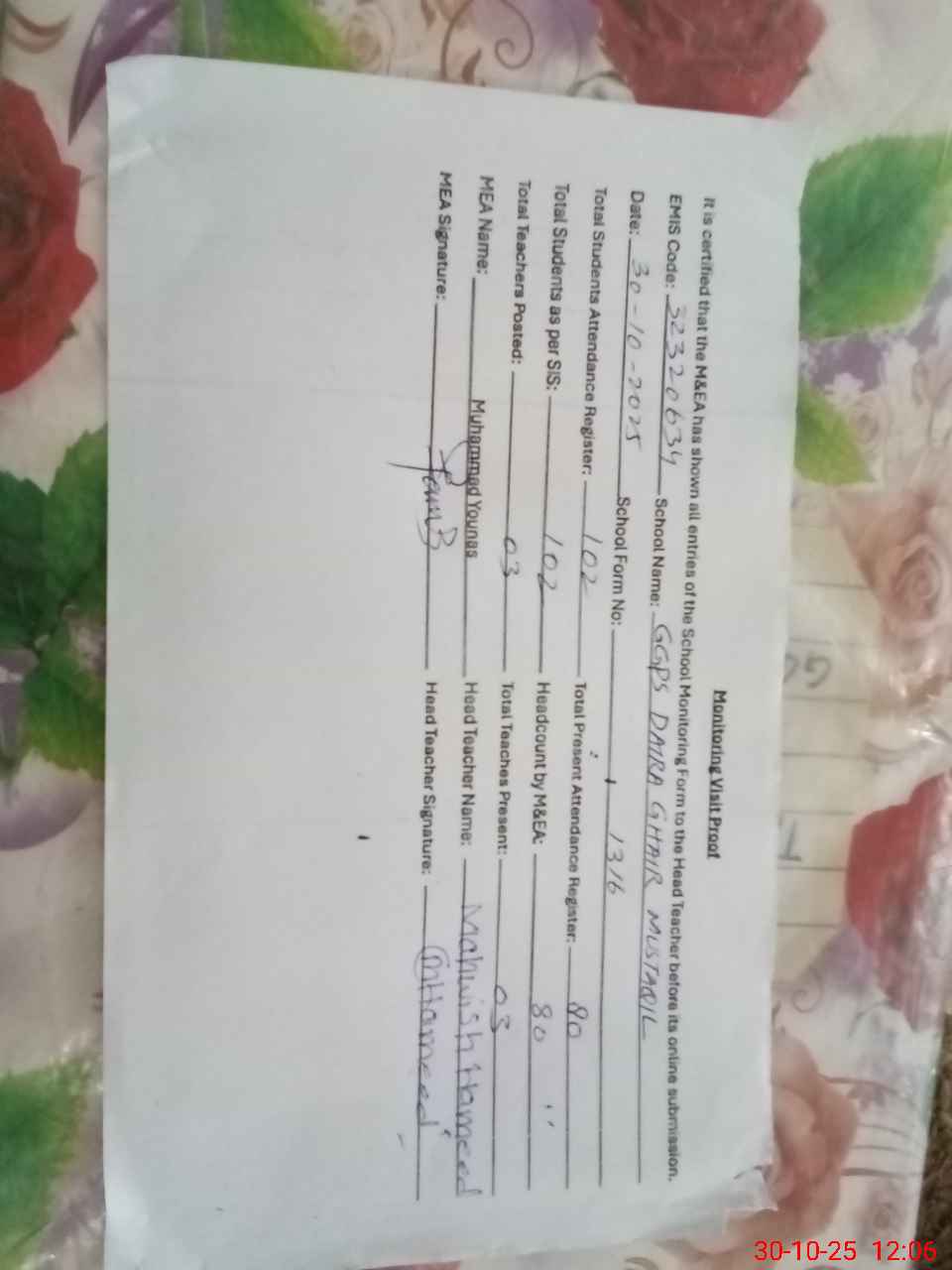 | EMIS Code: 32320634 | Name of School: GGPS DIARA GHAIR MUSTAQIL | |||