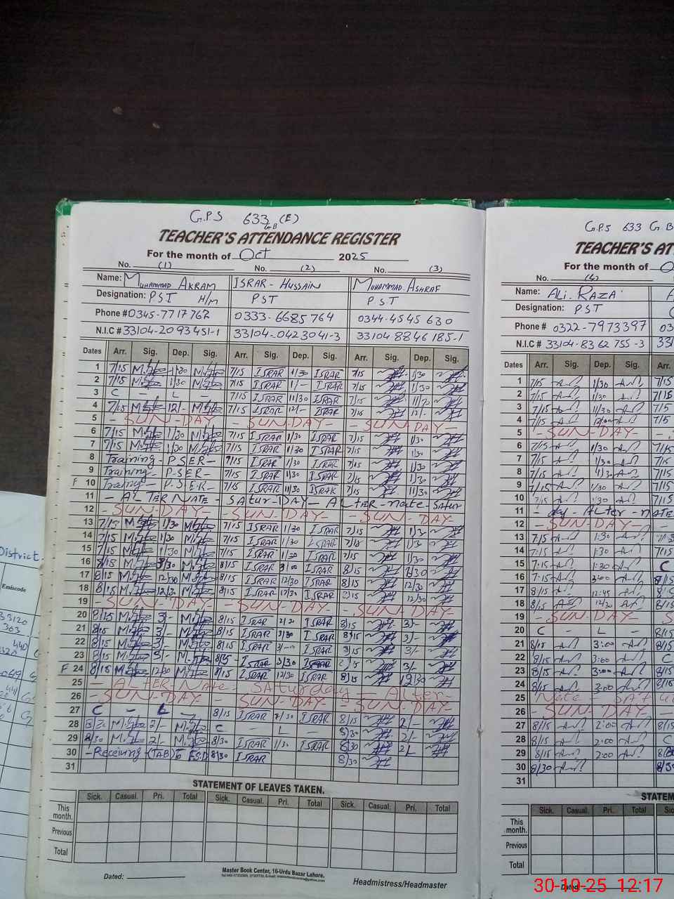 | Name: Mu**** Ak**** Designation: (School Headmaster's/Headmistress's) PST Phone/Cell Number: 03**** |