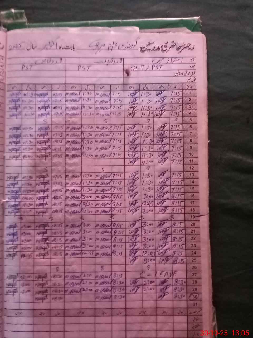 | Name: IM**** HU**** Designation: (School Headmaster's/Headmistress's) PST Phone/Cell Number: 03**** |
