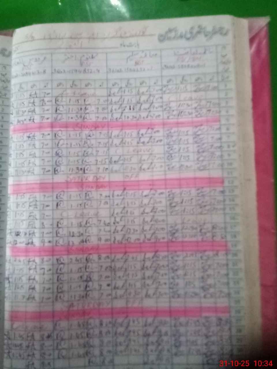 | CNIC | Full Name | Designation | R/C | Absence During Last Calender Month |