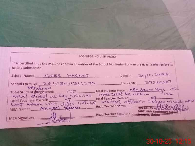 | EMIS Code: 37210507 | Name of School: GGES HASNOTE | |||