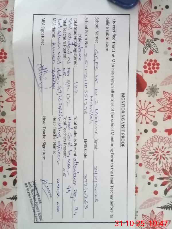 | EMIS Code: 37210263 | Name of School: GGPS MC NO. 2 MACHINE MOHALLAH | |||