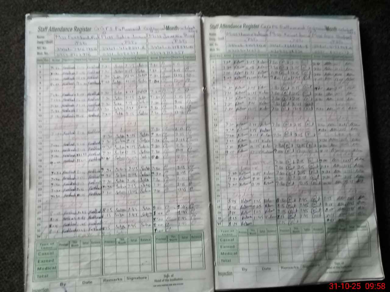 | CNIC | Full Name | Designation | R/C | Absence During Last Calender Month |