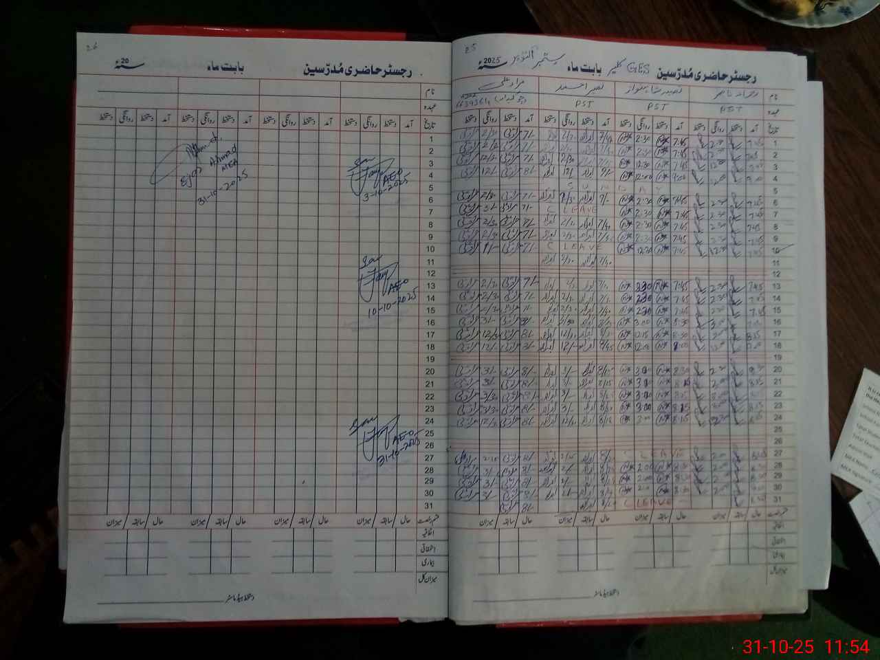 | CNIC | Full Name | Designation | R/C | Absence During Last Calender Month |