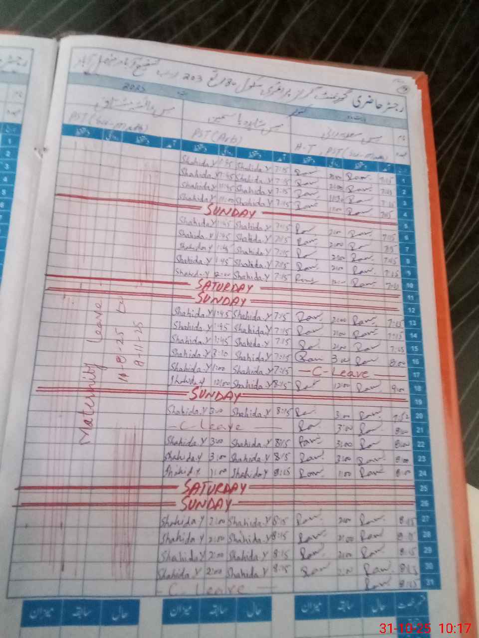| 33**** | Ay**** Mu**** | ESE | Regular | 0 | 0 | 0 | 0 | 0 | 0 | 0 | 0 | 0 | Maternity |