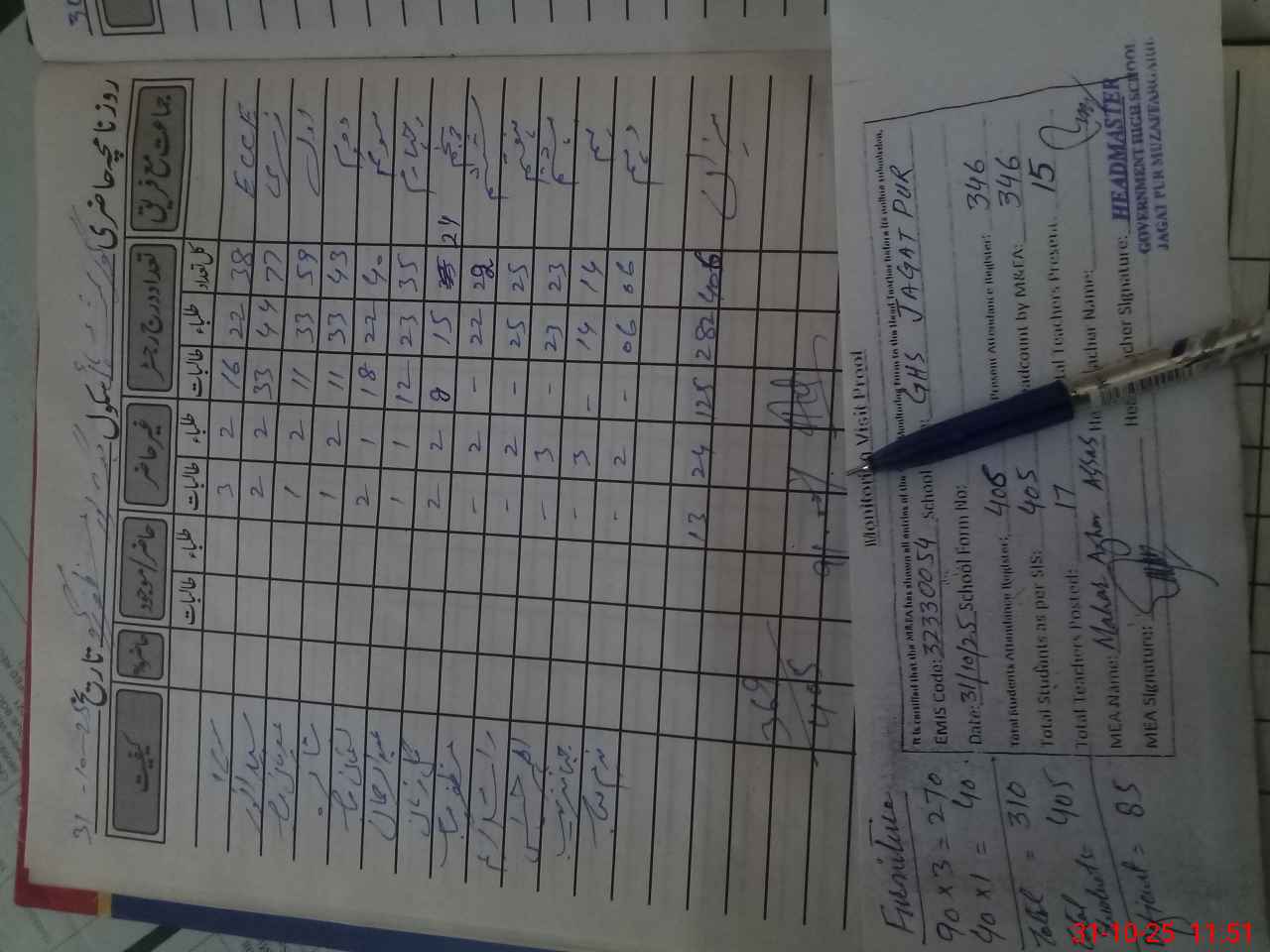 | Remarks (Use Separate Page if Required): Gap of 23 students in Roznamcha and physical head count | |||||