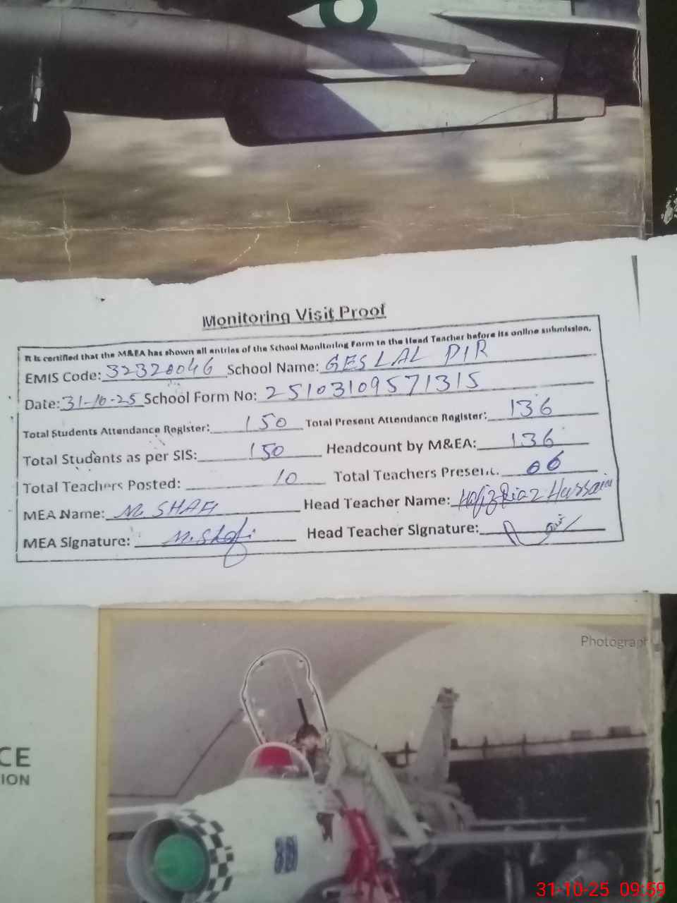| Attendance Register | Head Teacher | MEA with School | Visit Proof |