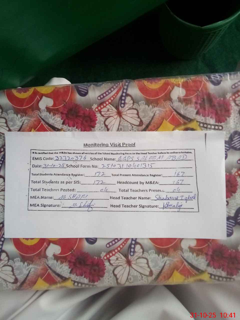 | EMIS Code: 32320376 | Name of School: GGPS SALEEM ABAD | |||