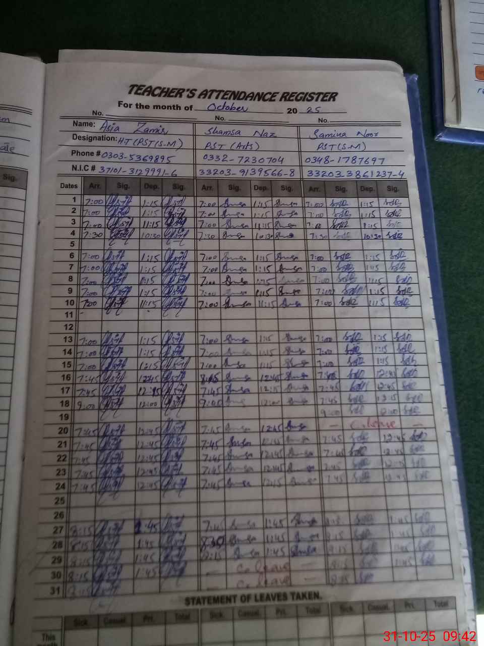 | Name: AS**** ZA**** Designation: (School Headmaster's/Headmistress's) PST Phone/Cell Number: 03**** |