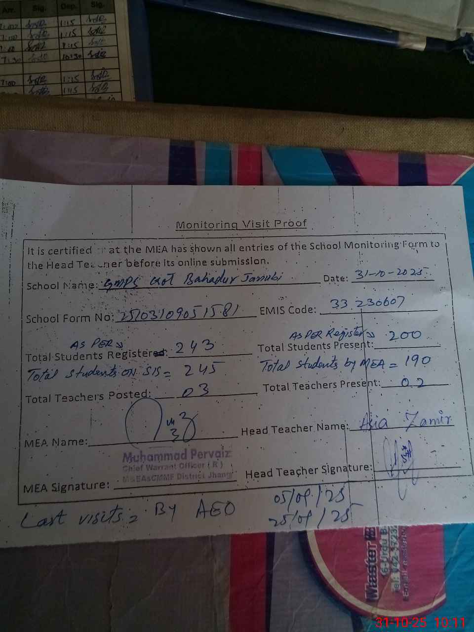 | EMIS Code: 33230607 | Name of School: GMPS KOT BAHADUR JANUBI | |||