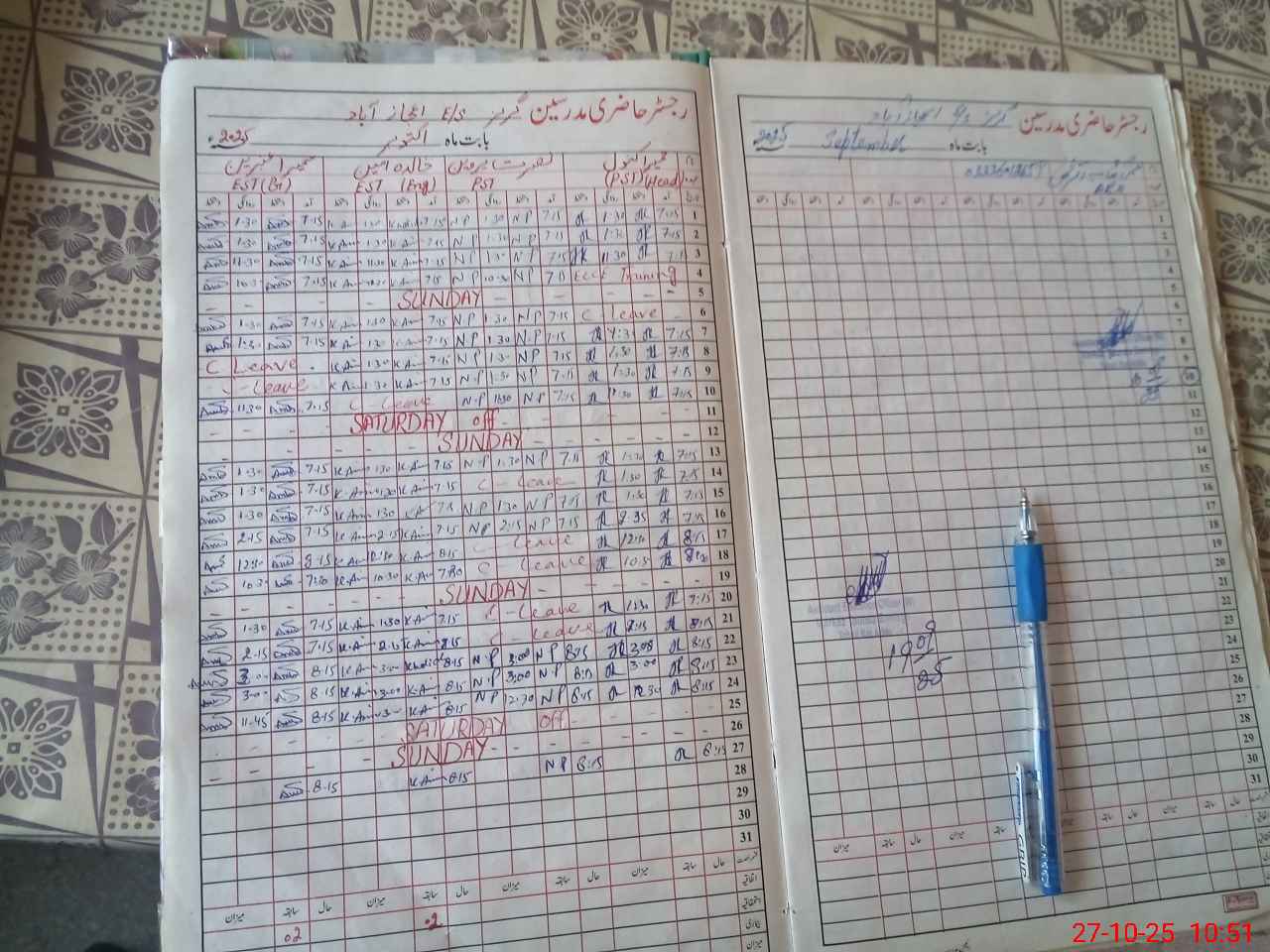 | Leave | Duty | Absent | Maternity | Medical | Ex- Pak |