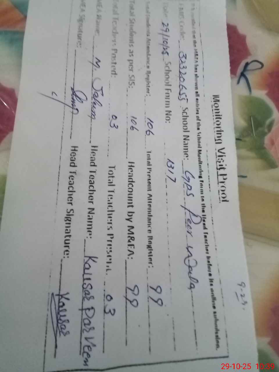 | EMIS Code: 32320655 | Name of School: GPS PEER WALA | |||
