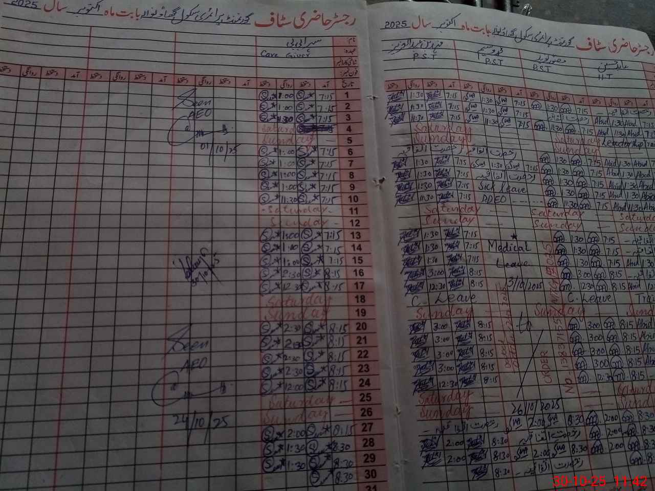 | Leave | Duty | Absent | Maternity | Medical | Ex- Pak |