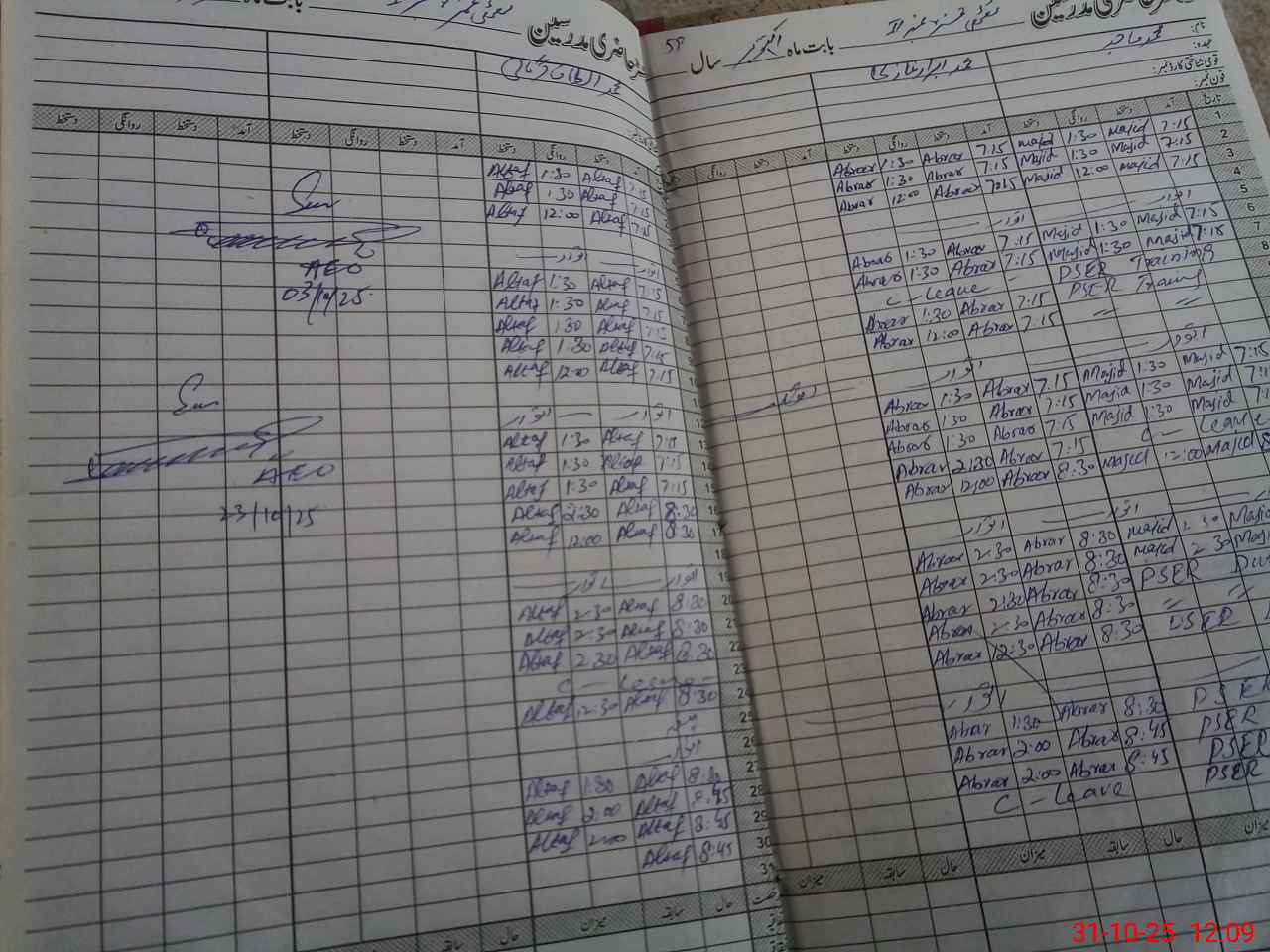 | CNIC | Full Name | Designation | R/C | Absence During Last Calender Month |