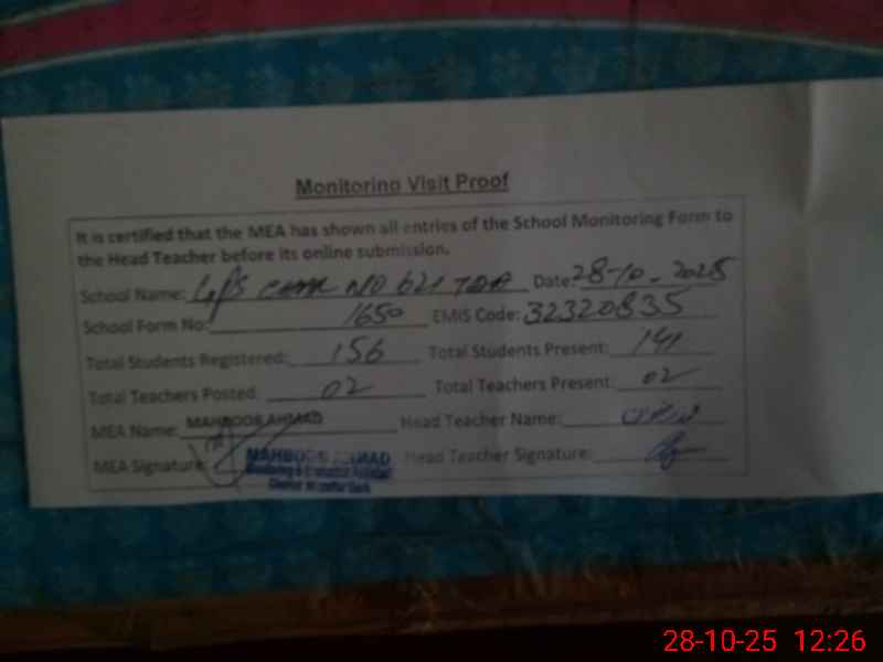 | EMIS Code: 32320835 | Name of School: GPS CHAK NO.621 TDA | |||