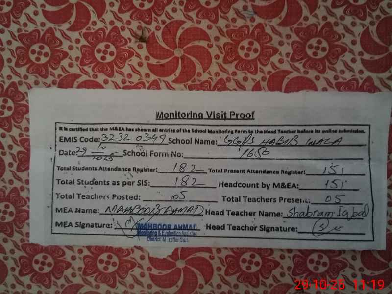 | EMIS Code: 32320349 | Name of School: GGPS HABIB WALA | |||