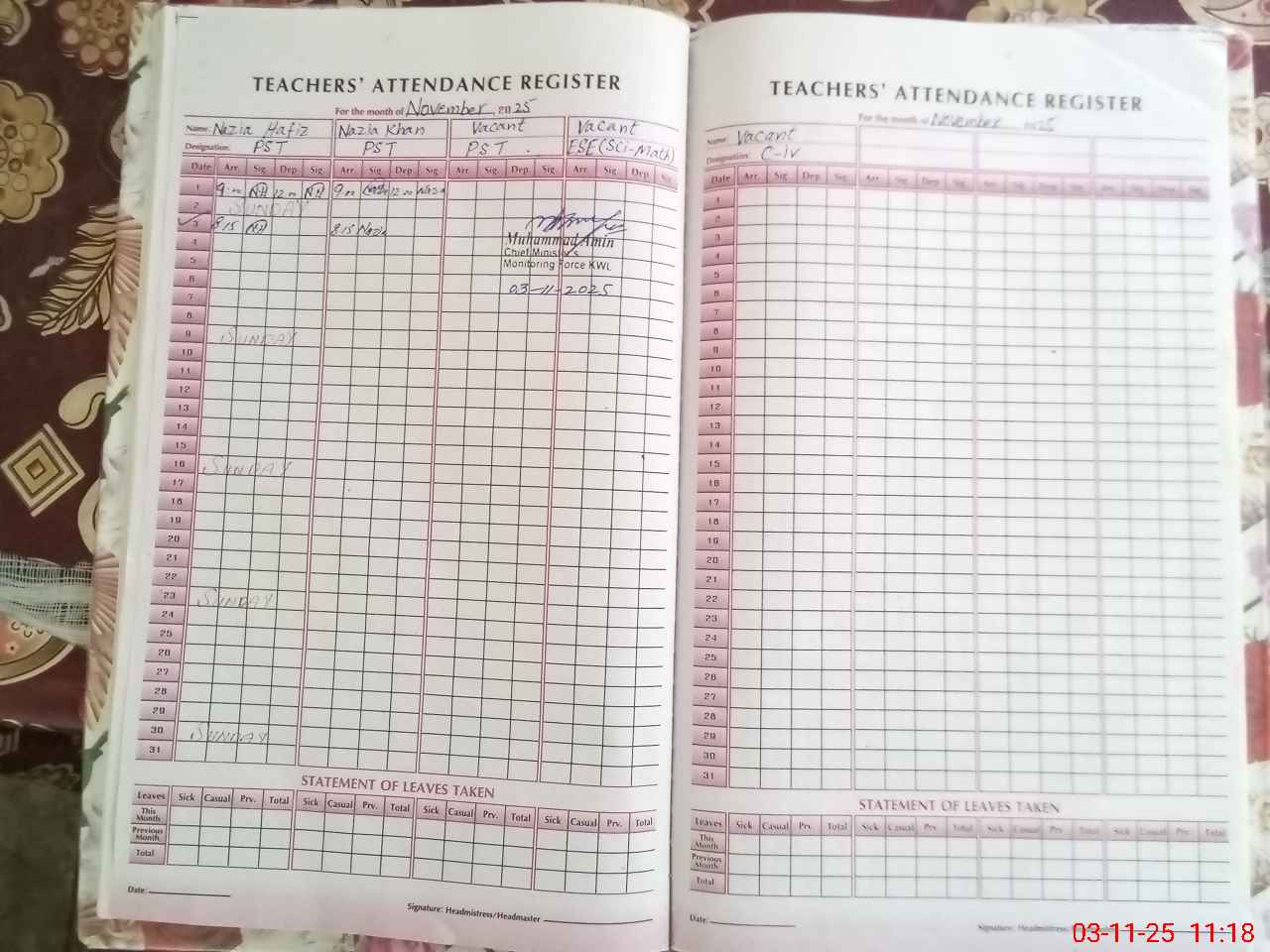 | Monitoring Date: 03-11-2025 | Start Time: 03-11-2025 10:47 AM | End Time: 03-11-2025 11:21 AM | Name of MEA: Mu**** Am**** | |