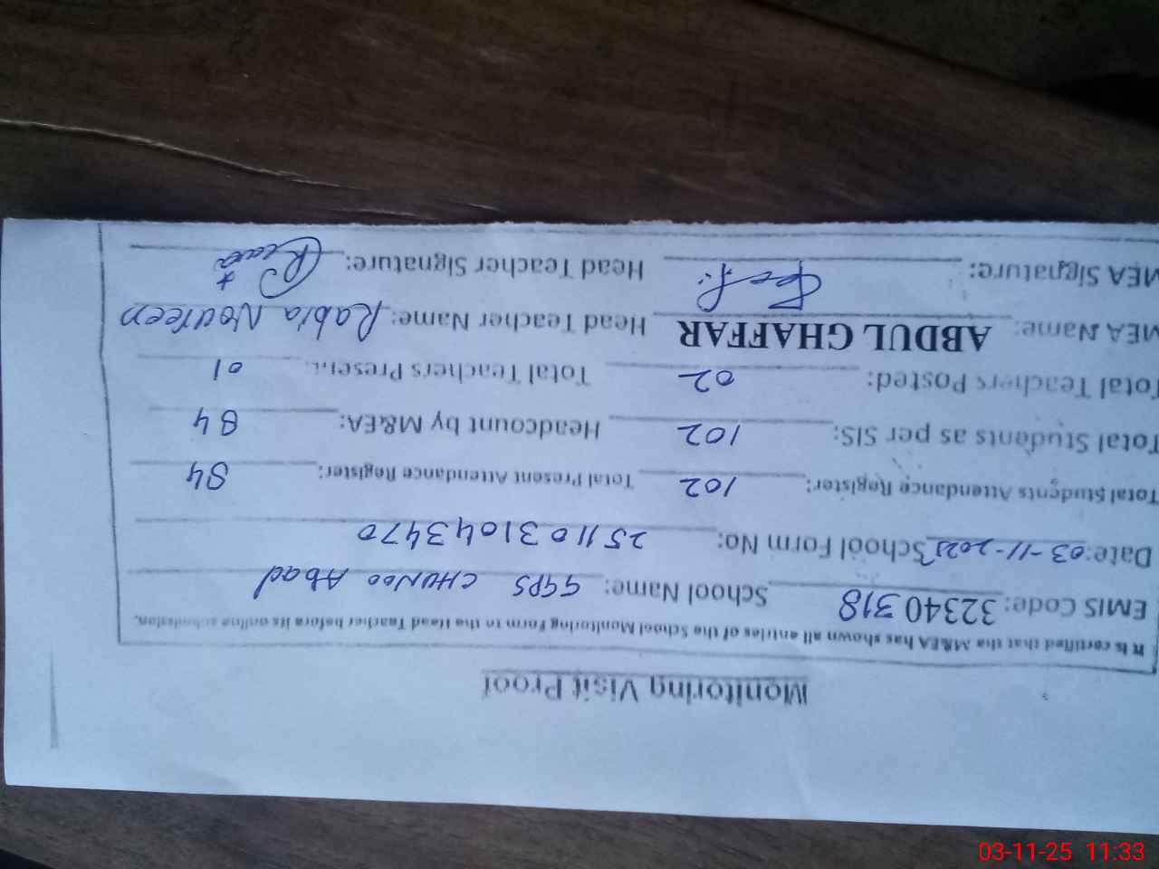| EMIS Code: 32340318 | Name of School: GGPS CHUNOO ABAD | |||