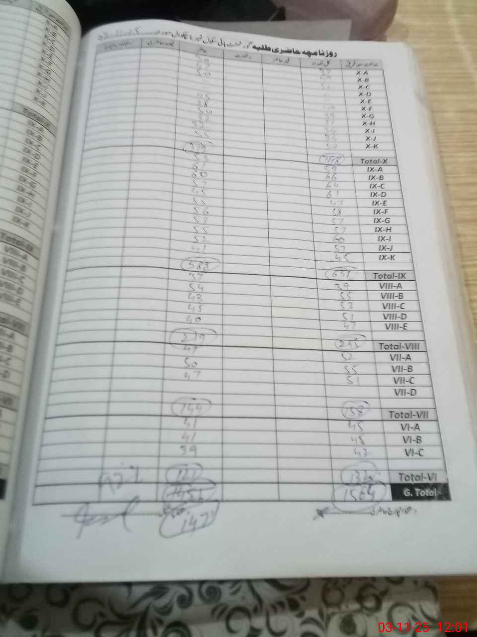 | No. of Students Present - Male | 0 | 0 | 0 | 0 | 0 | 0 | 0 | 0 | 121 | 140 | 245 | 588 | 379 | 1473 | ||