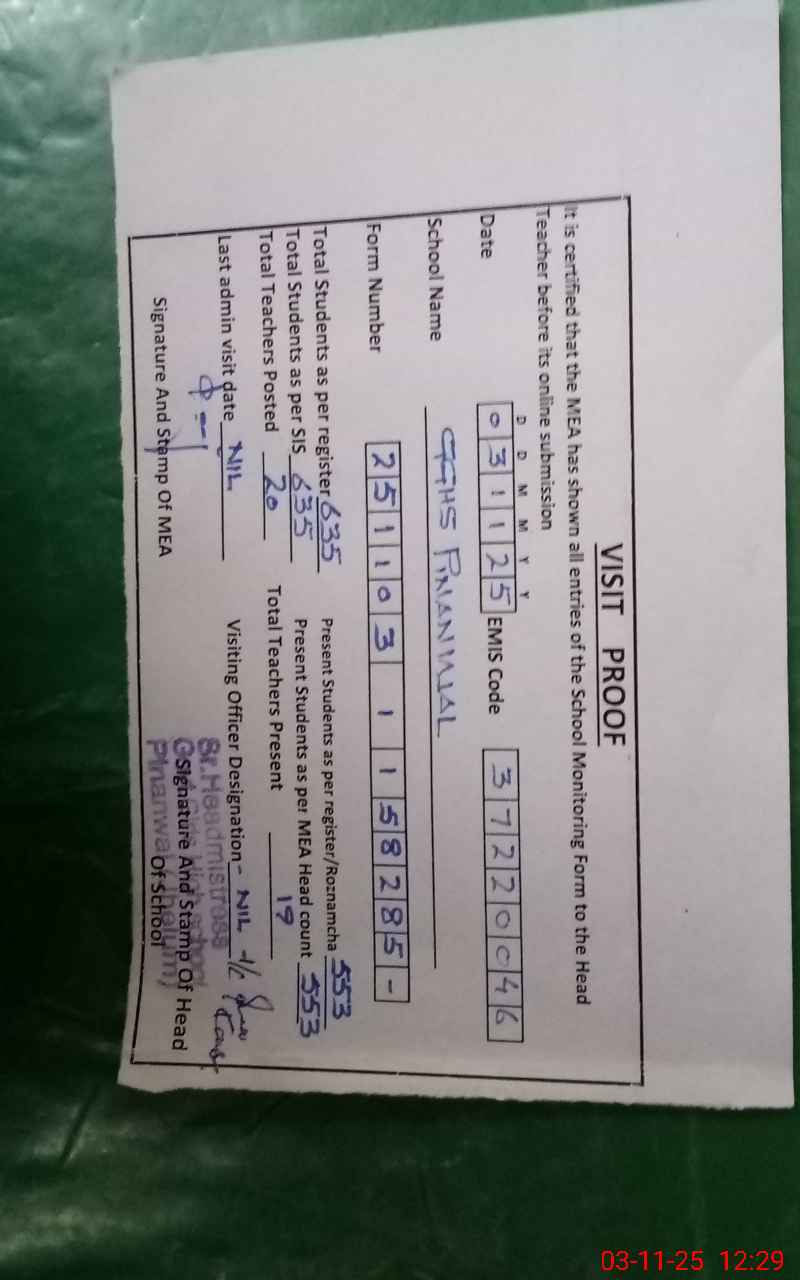 | Attendance Register | Head Teacher | MEA with School | Visit Proof |