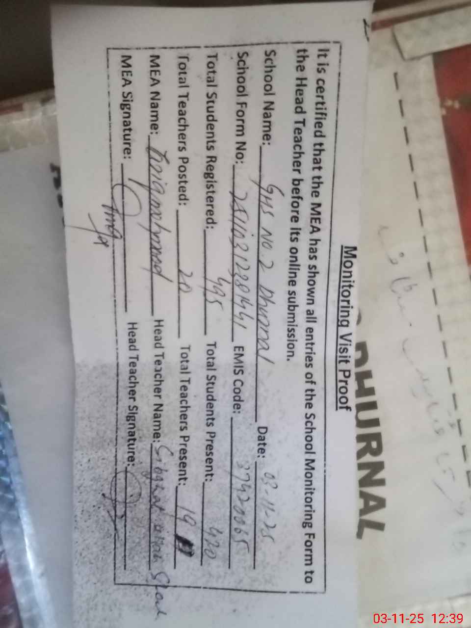 | EMIS Code: 37420065 | Name of School: GHS DHURNAL | |||