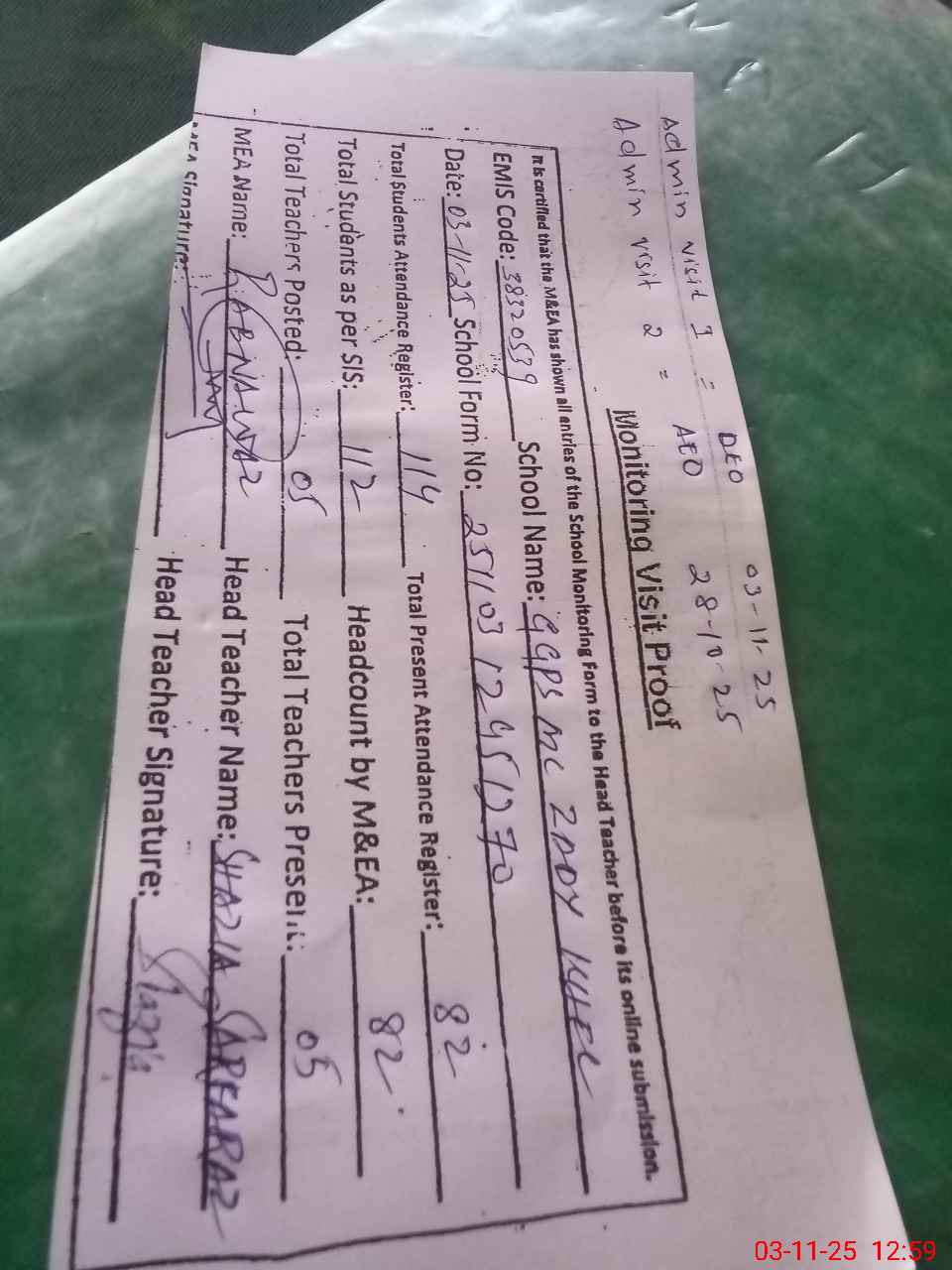 | EMIS Code: 38320539 | Name of School: GGPS MC ZADEY KHEL | |||