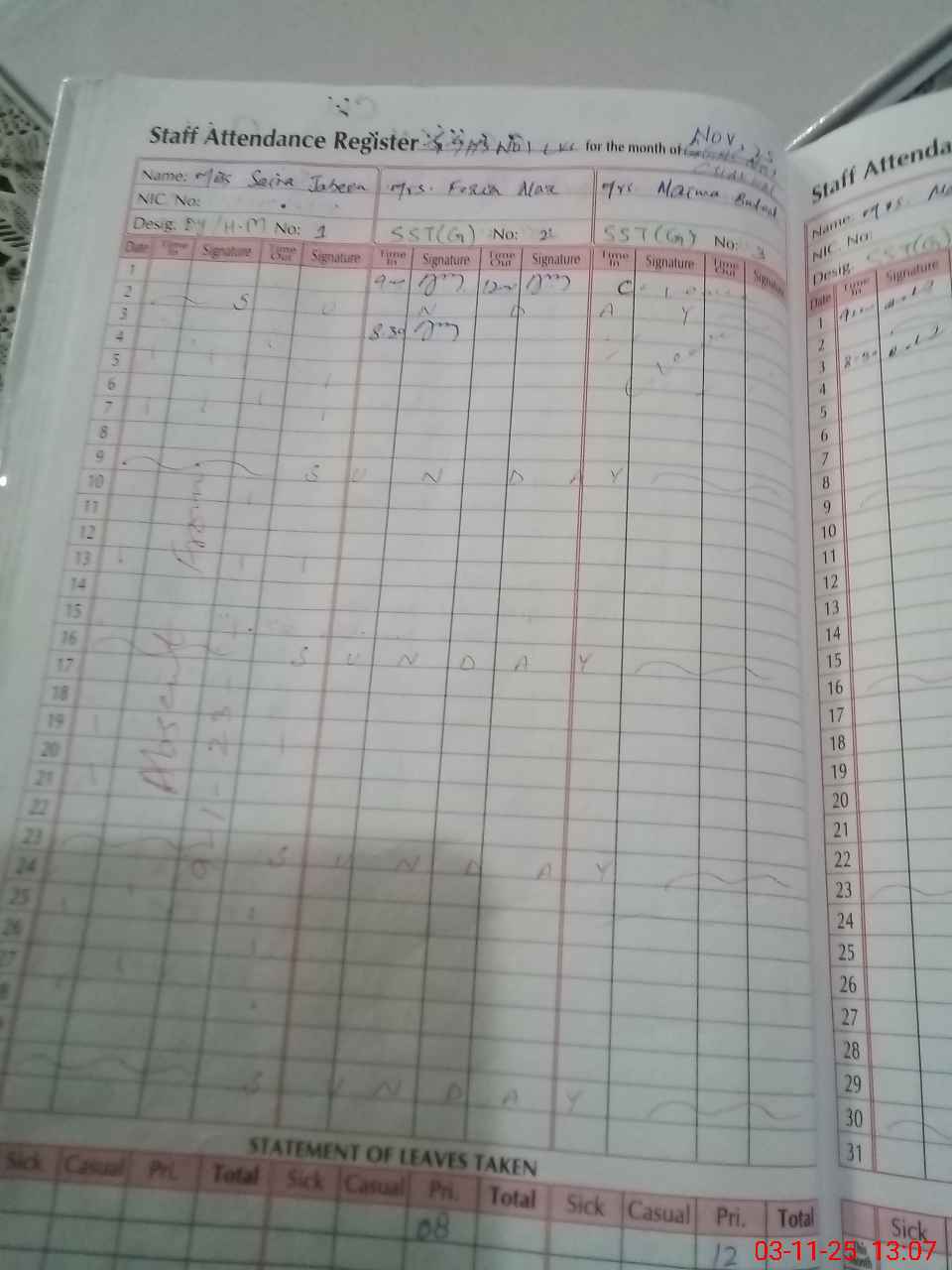 | 37**** | Sa**** Ja**** | ESE | Regular | 0 | 0 | 0 | 0 | 0 | 0 | 0 | 0 | 0 | Absent (Un-Authorized) |