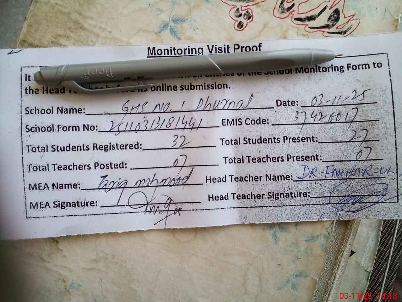 | EMIS Code: 37420017 | Name of School: GHS DHURNAL | |||
