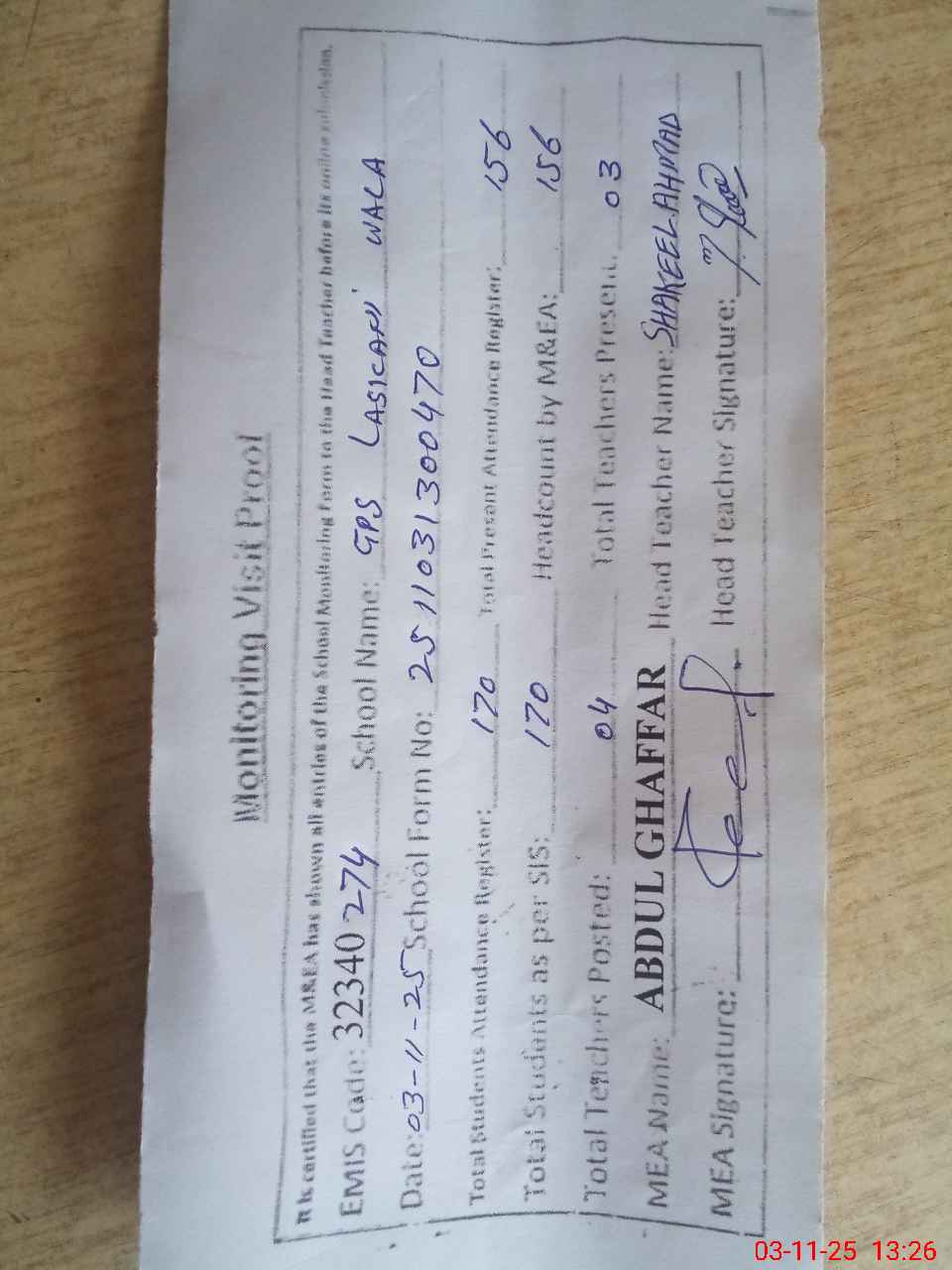 | EMIS Code: 32340274 | Name of School: GPS LASKANI WALA | |||