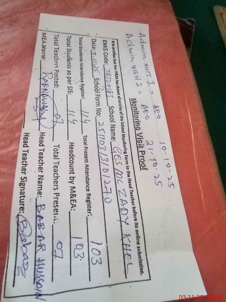 | EMIS Code: 38320183 | Name of School: GES MC ZADEY KHEL | |||