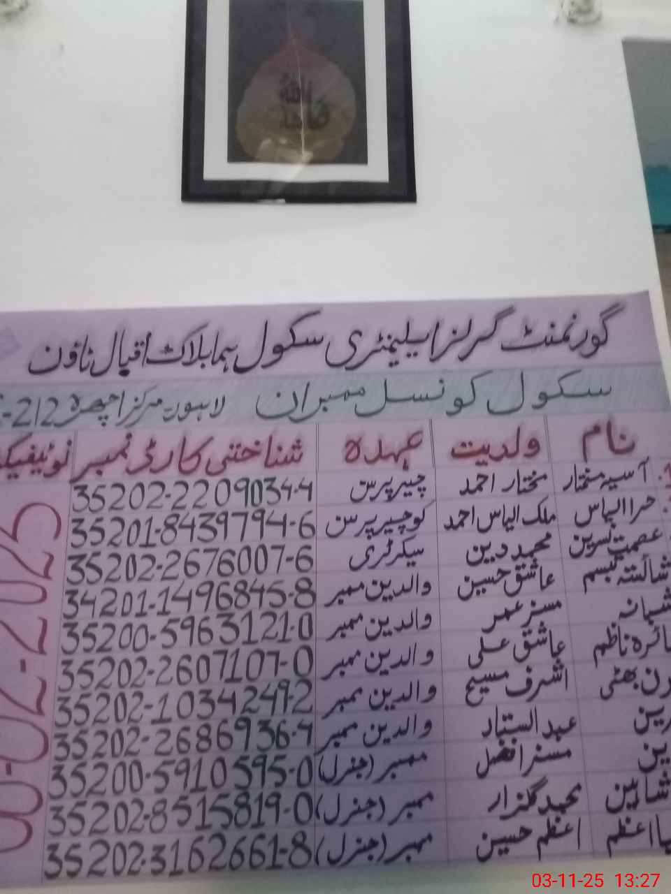 | PP No.: 160 | NA No.: 130 | Mauza: IQBAL TOWN | UC Name: HUMA BLOCK | UC No.: 212 |
