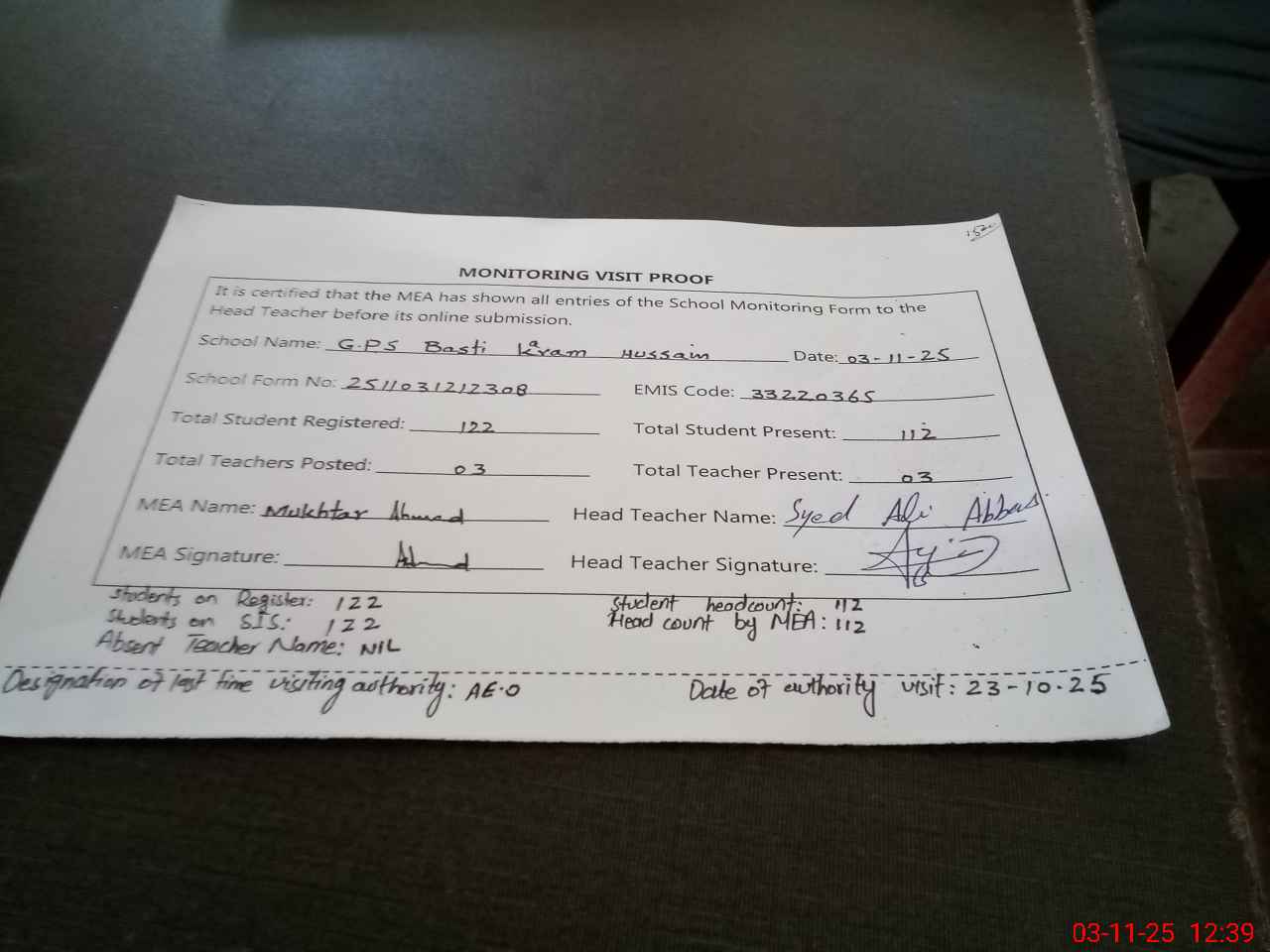 | EMIS Code: 33220365 | Name of School: GPS BASTI KARAM HUSSAIN | |||