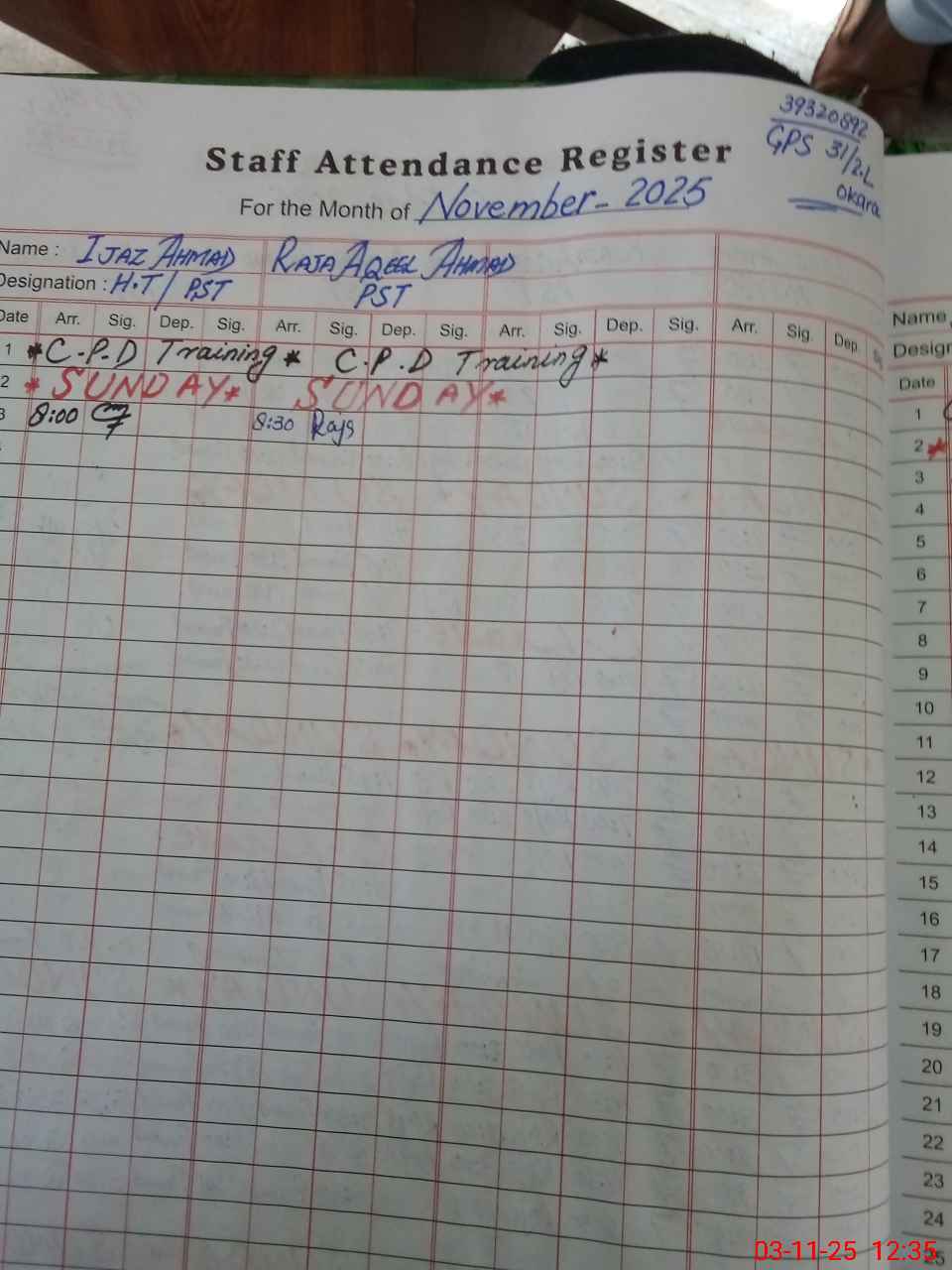 | CNIC | Full Name | Designation | R/C | Absence During Last Calender Month |