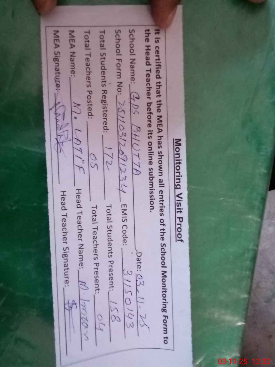 | EMIS Code: 31150143 | Name of School: GPS BHATTA | |||