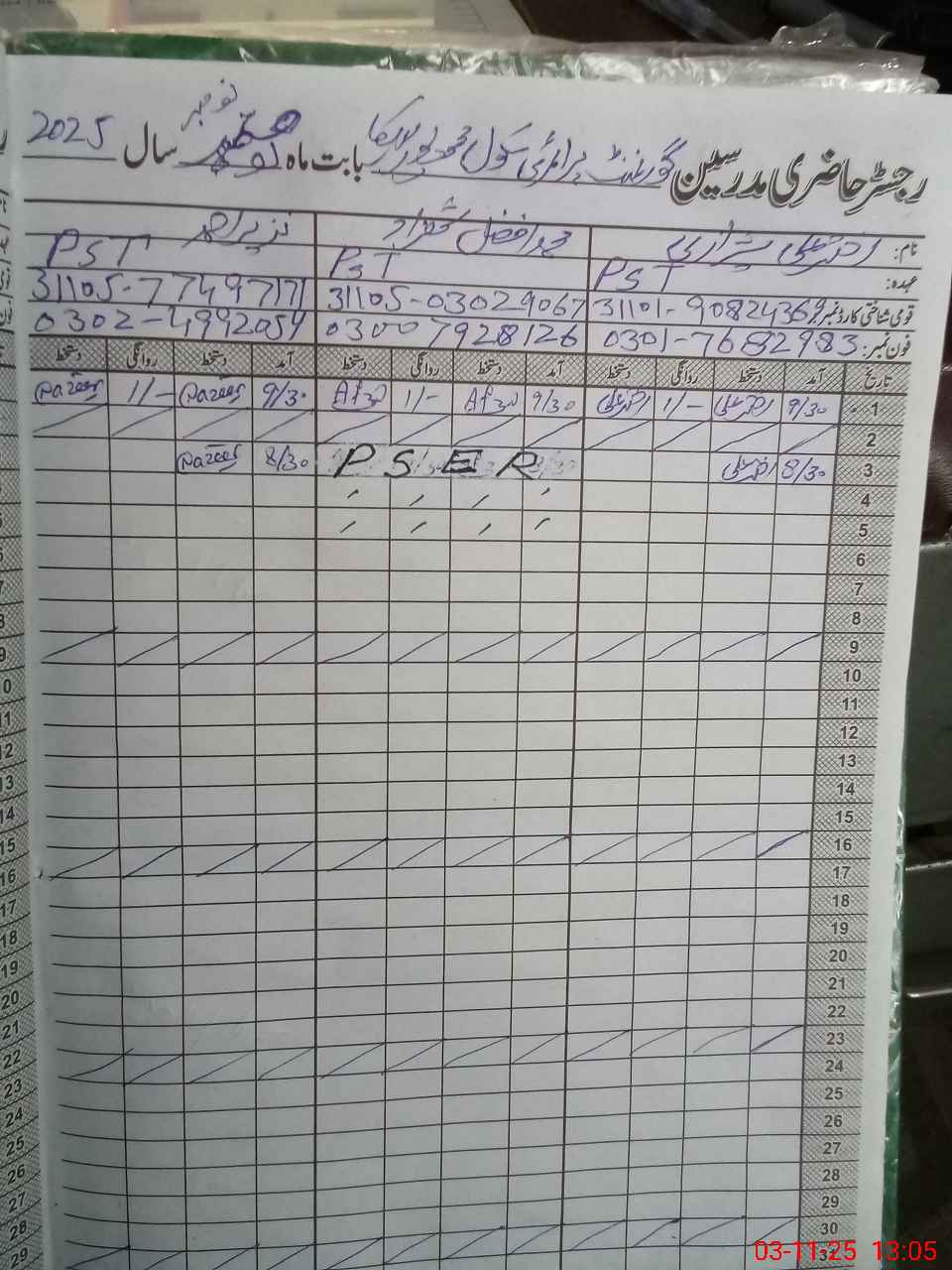 | Name: AK**** AL**** Designation: (School Headmaster's/Headmistress's) PST Phone/Cell Number: 03**** |