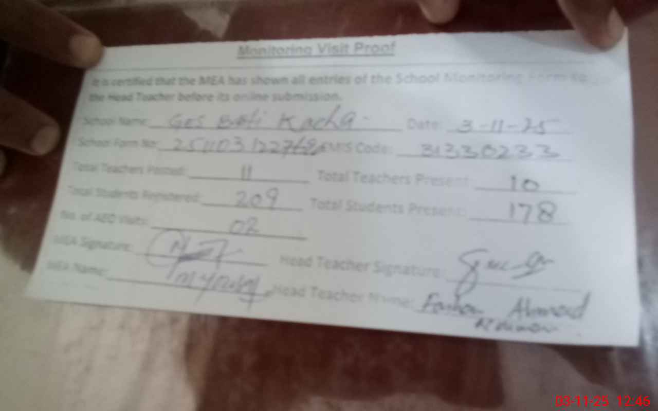 | EMIS Code: 31330233 | Name of School: GES BASTI KACHA | |||