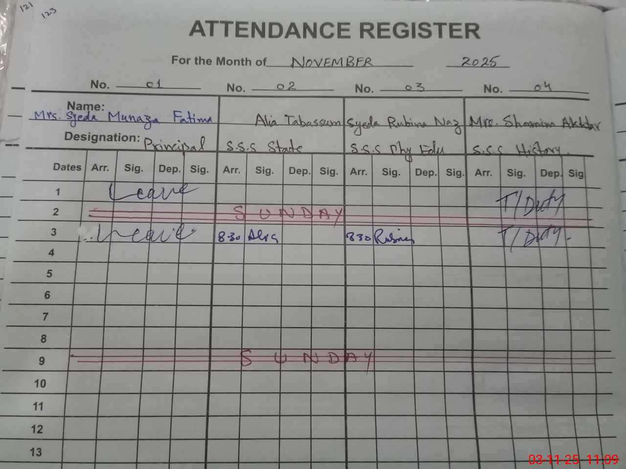 | CNIC | Full Name | Designation | R/C | Absence During Last Calender Month |