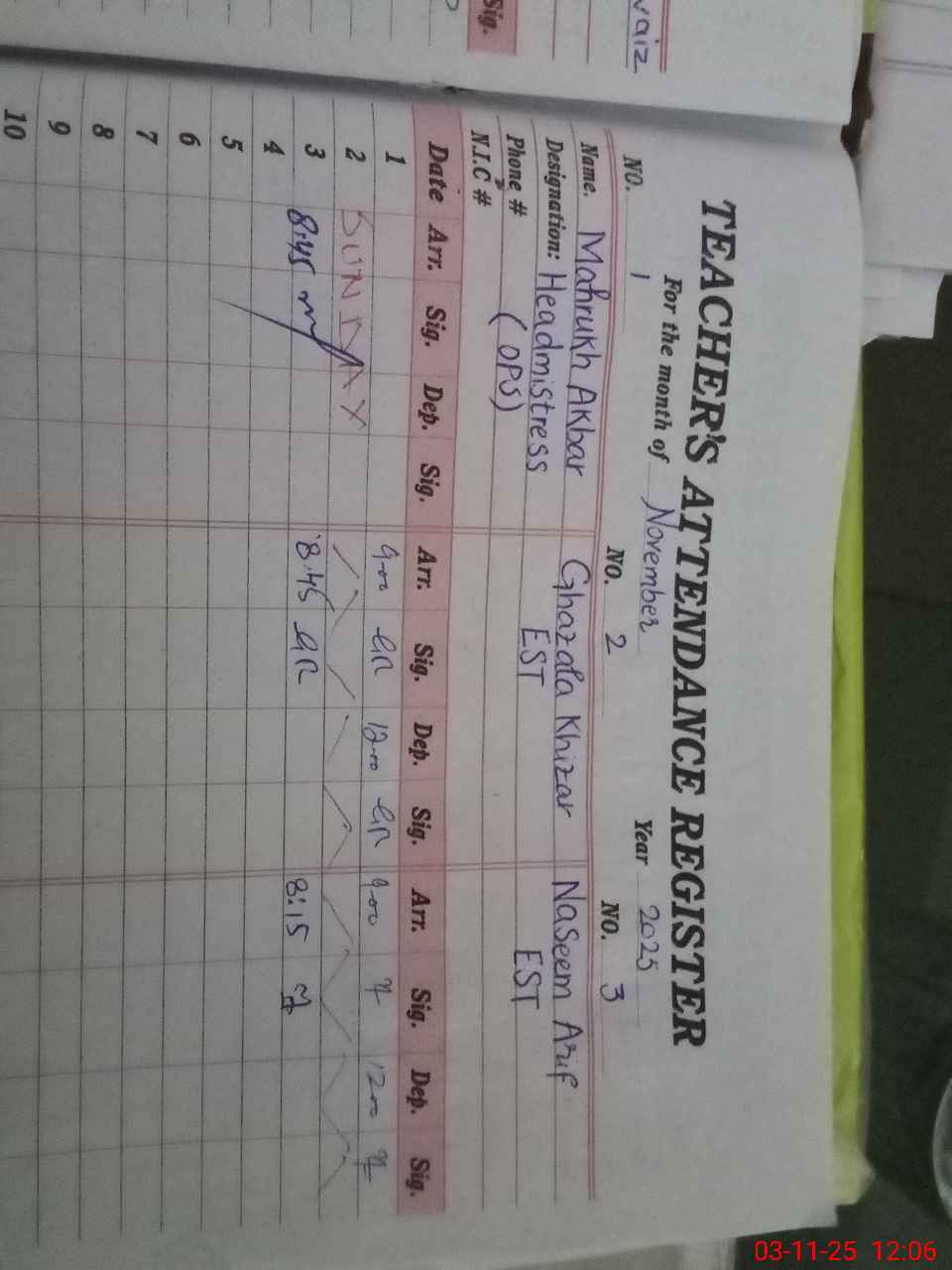 | Name: Ma**** Ru**** Ak**** Designation: (School Headmaster's/Headmistress's) Incharge Head Mistress EST Phone/Cell Number: 03**** |