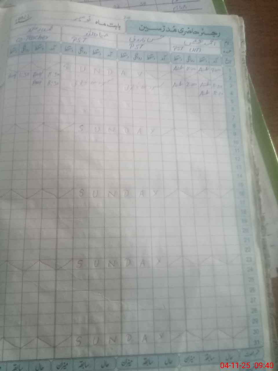 | CNIC | Full Name | Designation | R/C | Absence During Last Calender Month |