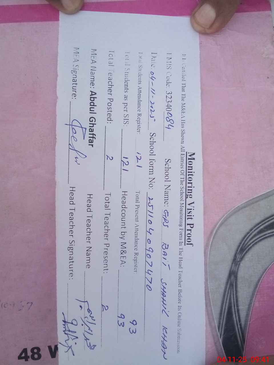 | EMIS Code: 32340084 | Name of School: GPS BAIT SHAHIL KHAN | |||
