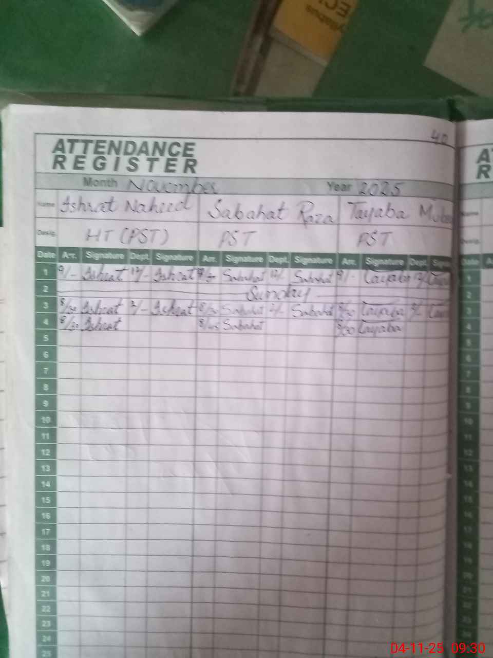| Monitoring Date: 04-11-2025 | Start Time: 04-11-2025 09:15 AM | End Time: 04-11-2025 09:55 AM | Name of MEA: Ma**** Al**** | |